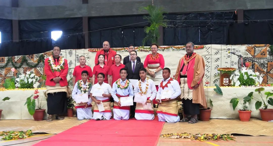 中國駐湯加大使曹小林為表現優秀的學生發放獎學金