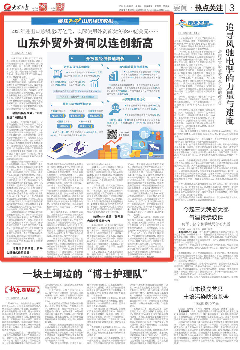 山東開放型經濟在2021年這個全球疫情反復、海運費暴漲等不確定性因素增加的特殊年份,取得了不同尋常的成績。“刷新”“跑贏”“突破”,這些頻繁用到的詞匯背后,山東做對了什么?1月22日出版的大眾日報推出本報評論員文章《以高水平開放穩外貿外資——三談開局之年的山東答卷》,解讀報道《山東外貿外資何以連創新高》,歡迎關注。