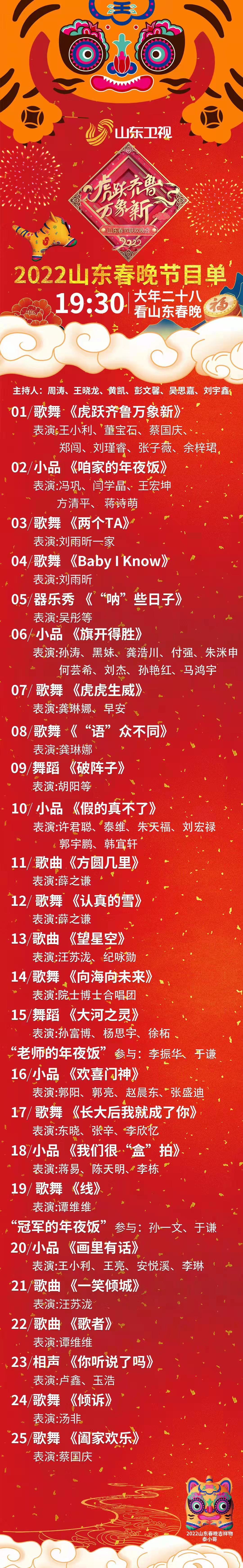 山東春晚節目單新鮮出爐,一睹為快!山東春晚邀你一起迎虎年~快準備好,大年二十八,精彩舞臺均已就緒,看點滿滿精彩紛呈,我們不見不散