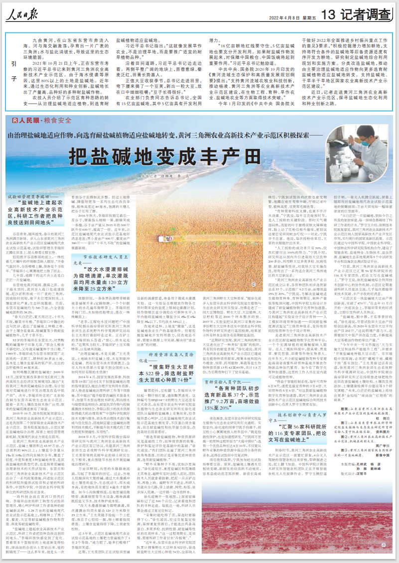 “匯聚56家科研院所的116支專家團隊,把論文寫在鹽堿地上”