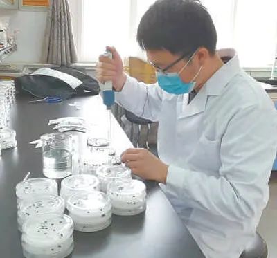 山東省東營市農業科學研究院鹽生植物與生態農業研究所育種實驗人員寧凱在做實驗。資料圖片