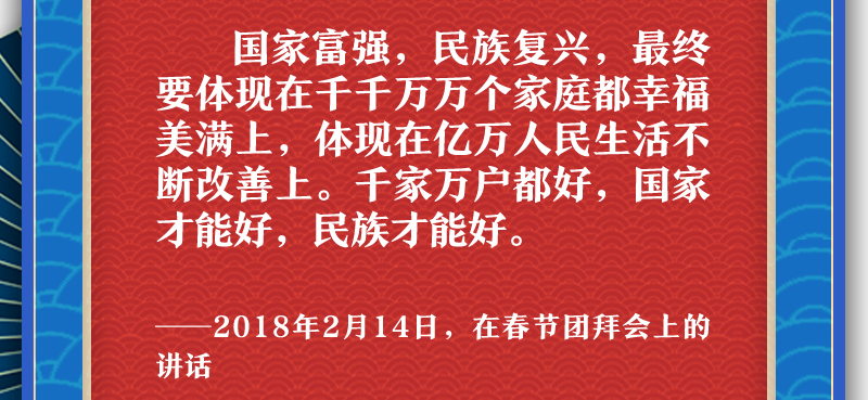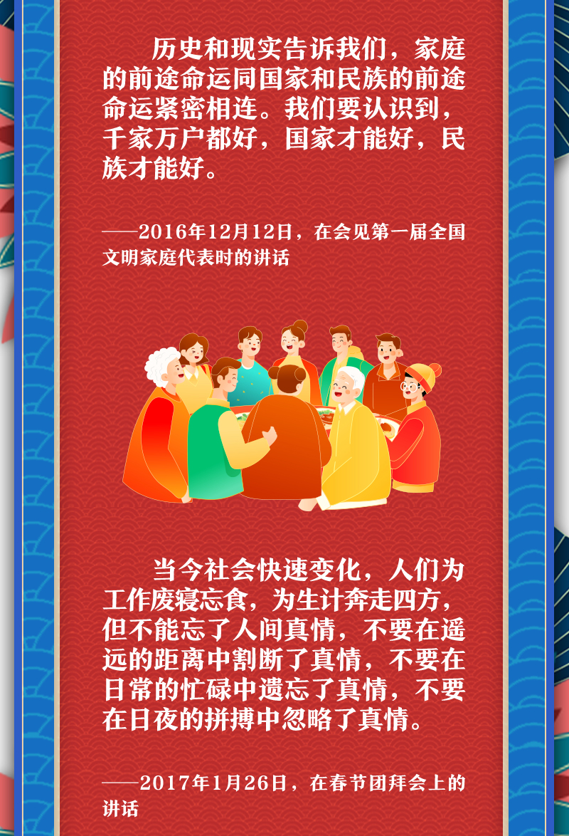 他提醒大家,把實現家庭夢融入民族夢之中,心往一處想,勁往一處使。