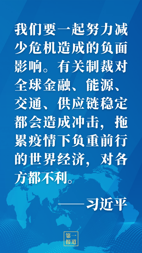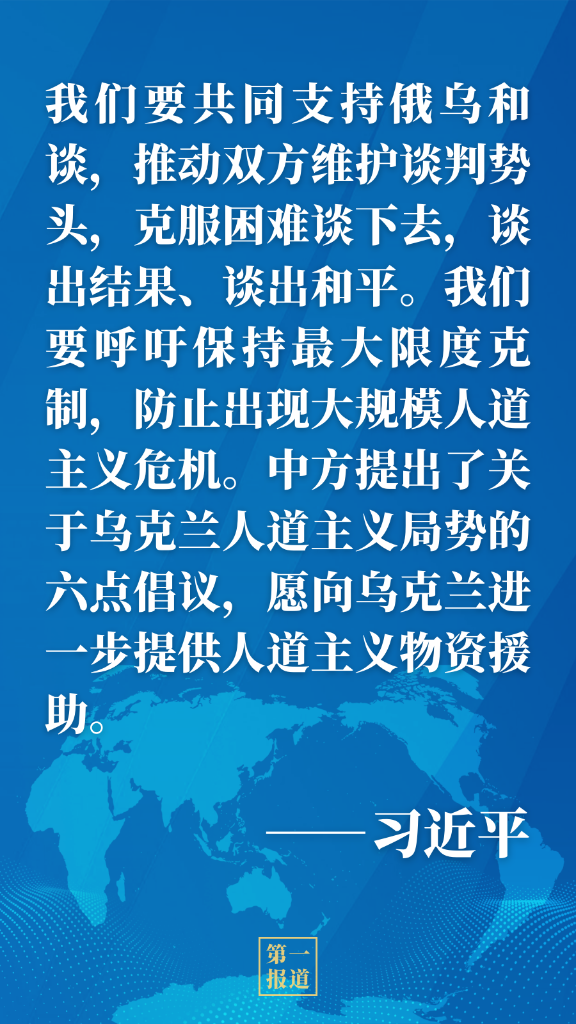 習近平主席強調,當前,烏克蘭局勢令人擔憂,中方對歐洲大陸重燃戰火深感痛惜。